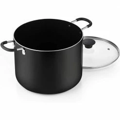 10.5 qt. Hard-Anodized Aluminum Nonstick Stock Pot in Black with Glass Lid by Cook N Home