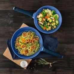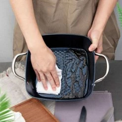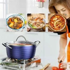 4.22 qt. Blue Ceramics Cooking Soup Pot Small Square Nonstick Soup Pot with Lid by cadeninc