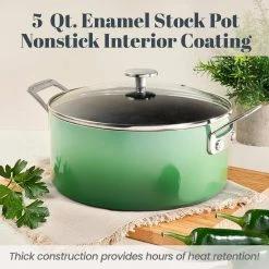 5 qt. Round Green Aluminum Nonstick Ultra-Durable Mineral and Diamond Coating Gradient Brasier Stock Pot with Lid by GRANITESTONE