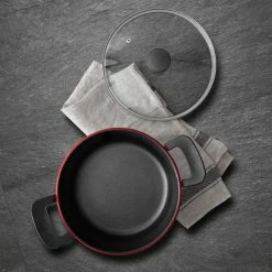 Artmartin 1.5 qt. Cast Aluminum Ceramic Nonstick Sauce Pan in Ash with Glass Lid by AMERCOOK