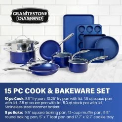 Classic Brights 14-Piece Aluminum Nonstick Cookware Set in Marine Blue Gradient by Rachael Ray