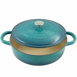 Artisan 5 qt. Round Enameled Cast Iron Braiser Pan with Self Basting Lid in Teal by Crock-Pot