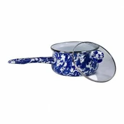 Cobalt Swirl 1.25 qt. Porcelain-Coated Steel Sauce Pan in Sea Glass with Glass Lid by Golden Rabbit