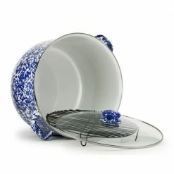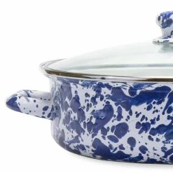 Cobalt Swirl Enamelware 4 qt. Round Porcelain-Coated Steel Dutch Oven with Lid by Golden Rabbit