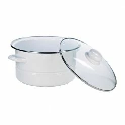 Enamelware 1.25 qt. Porcelain-Coated Steel Sauce Pan in Grey Swirl with Glass Lid by Golden Rabbit