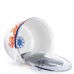 Blue Crab 18 qt. Porcelain-Coated Steel Stock Pot in Blue with Glass Lid by Golden Rabbit