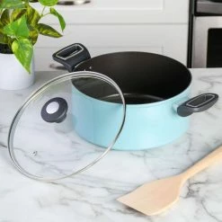 18 in. 8 qt. Martha Blue Enamel on Steel Oval Roasting Pan with Rack and Lid by MARTHA STEWART