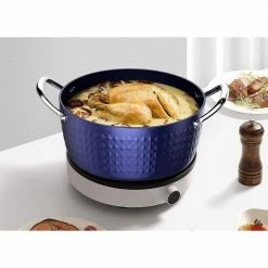 4.22 qt. Blue Ceramics Cooking Soup Pot Small Square Nonstick Soup Pot with Lid by cadeninc