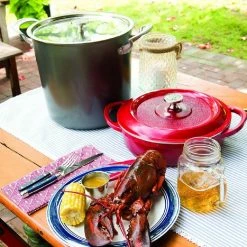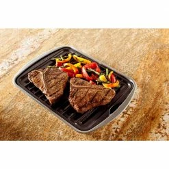 365 Grilling 7.875 in. Aluminum Sizzle and Serve Pan in Black and Stainless Steel by Nordic Ware