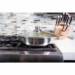 Professional 20 qt. Stamped Steel Stock Pot in Stainless Steel with Glass Lid by Camerons Products