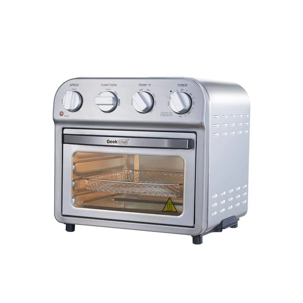 Family size and Space saving design – 24 qt., 3 rack levels allow you to prepare family-sized quantities for up to 10 people at once, or control how fast and crispy your food cooks. With a compact and sleek design this air fryer oven can be placed on your countertop or stored away when not in use. Healthy, Fast, Powerful – ETL listed for safety, 1700-Watt motor helps to efficiently cook food in the healthiest way possible by cutting over 85% of fats, while an included baking tray also acts as a drip tray to catch any excess oil. Versatile 7 Modes smart – Cake / Chicken / Fish / Pizza / Steak / Toast / Wings / Cookie / Defrost / Skewer / Vegetables / French Fries / keep Warm. The cyclone hot air circulation technology make your food evenly cooked to achieve a crisp and delicious flavor Toaster Oven. It also adjusts the taste of the food according to your personal taste. Expanding Cooking Options – Come with 4 extra accessories:1 Baking pan to bake the chicken or roast, 1 Airfryer Basket to Fried French fries, 1 Oven Rack to Bake chicken wings and toast or dried fruit, 1 drip tray that catches fat and oil, this air fryer can create more possibilities which means you’re able to cook more types delicious with the recipe. Best Customer Service Geek Chef provides 30 days money-back guarantee, 1 year warranty and a lifetime technical consultation. Geek customer service ready to serve you within 24 hours.