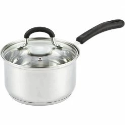 The Cook N Home 1QT and 2 Quart Stainless Steel Sauce Pan with Lid is made of 18-10 stainless steel with an aluminum disc layered in the bottom. The aluminum disc provides even heat distribution and prevents hot spots. Tempered glass lid with steam vent makes viewing food easy from start to finish. Silicone wrapped handle gives a cool and comfortable grip. The handle is riveted for strength and durability. Induction compatible. Works on: gas, electric, glass, ceramic, etc. Not oven safe. Dishwasher safe, hand wash recommended.