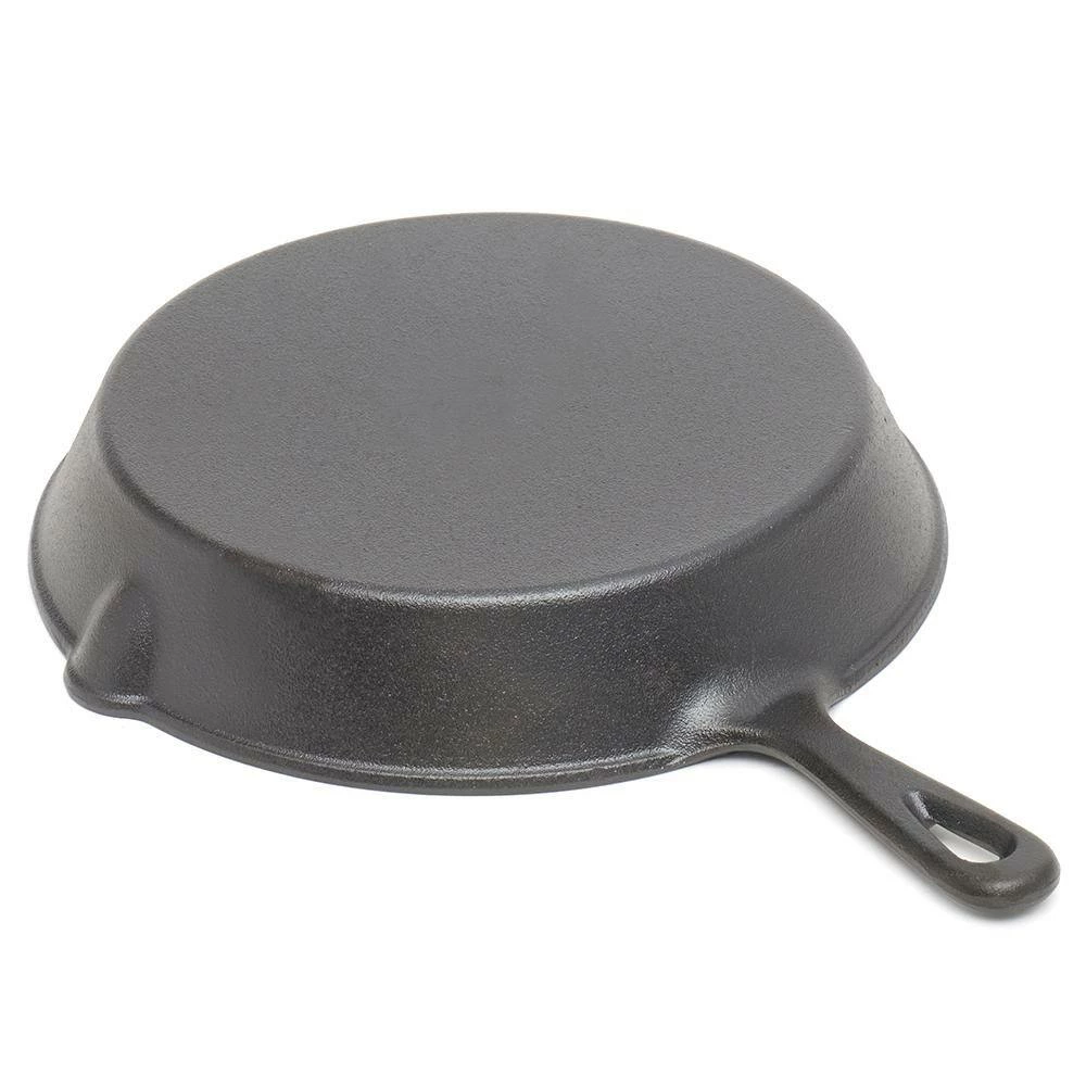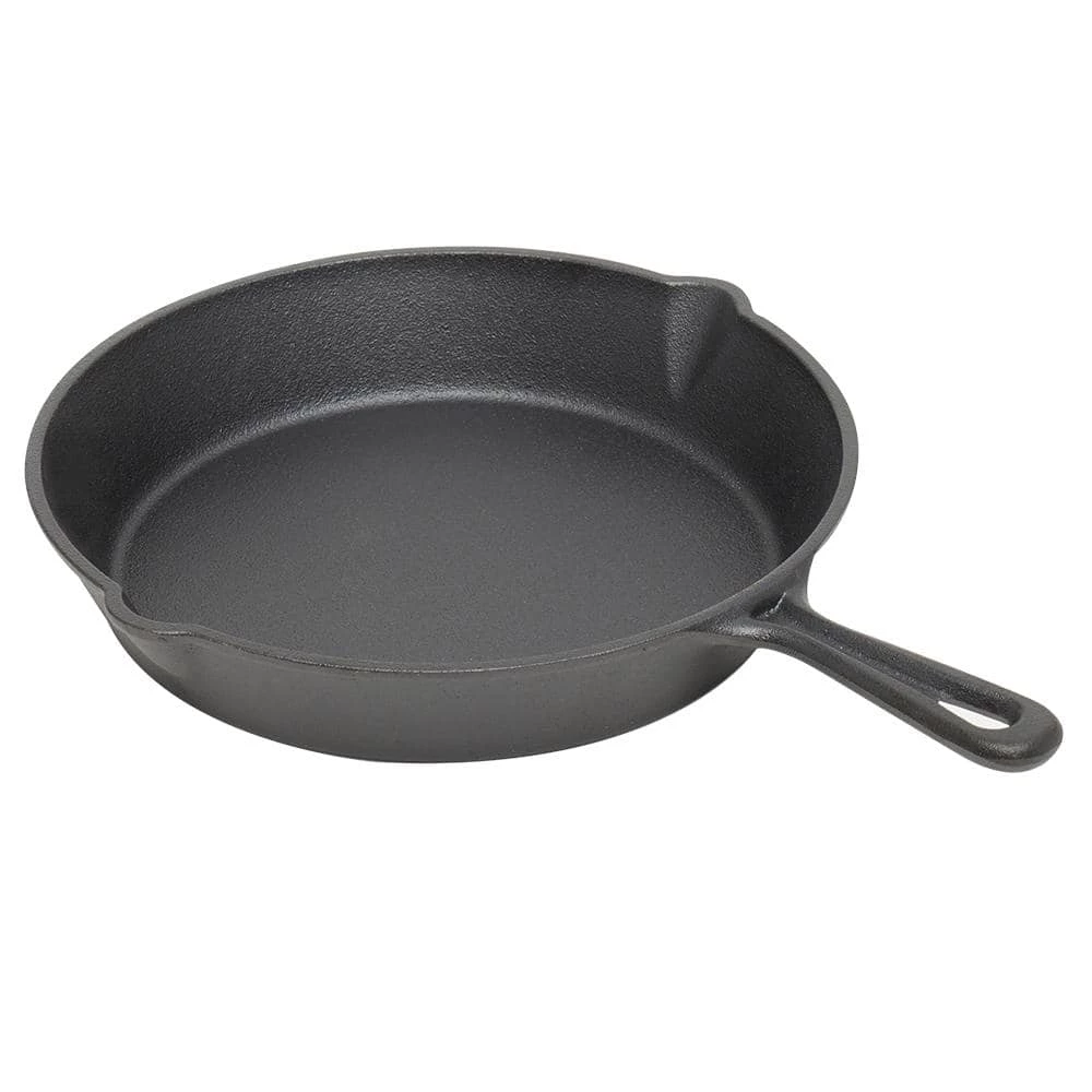 Designed to last for years to come, this skillet is seasoned with natural plant oil for a smooth, quick-release finish that improves over time. Side pour spouts enable you to drain out excess grease and oil. Hanging hole in handle lets you store on a kitchen rack when not in use. Made from heavy duty cast iron, it provides superior heat distribution. The pan is pre-seasoned with natural oil and ready to use at your convenience. Ideal for both indoor and outdoor cooking. Use on a stovetop or on an outdoor grill. Enjoy the durability and convenience that this premium cast iron cookware can bring to your life. Hand wash with warm water and use mild soap. Dry thoroughly with a soft towel. Item dimensions may differ slightly due to the unique nature of the product. Color and finish may also differ from the images shown due to differences in monitor displays. Props and accessories are not included.
