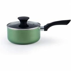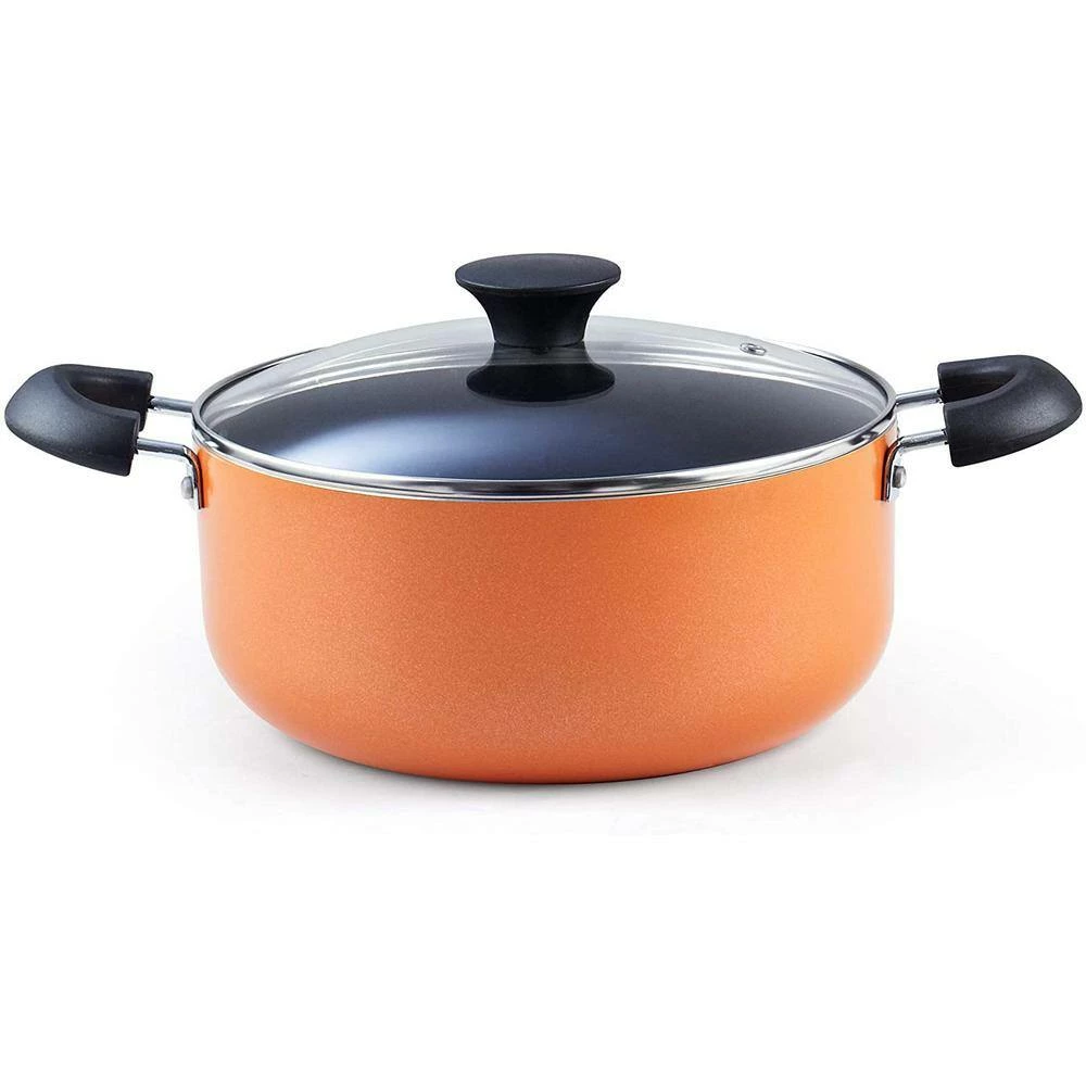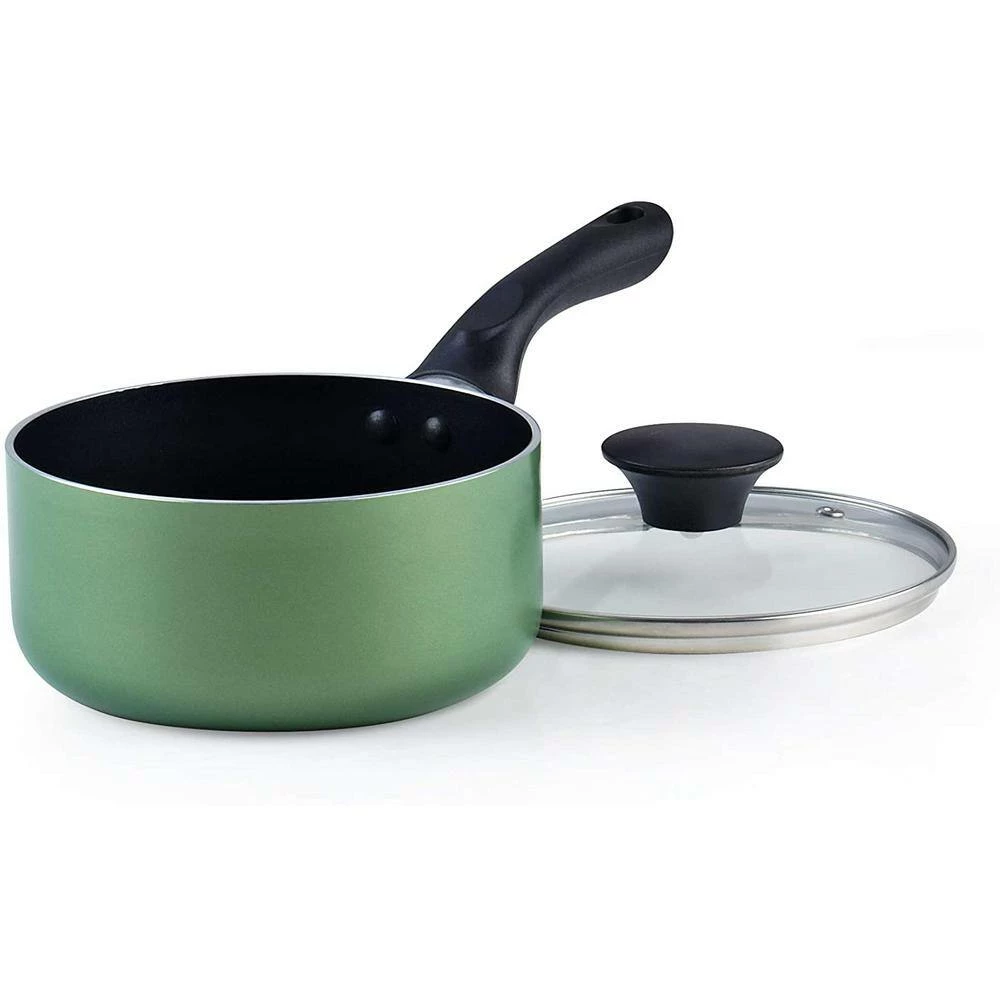 - Includes: 1 and 2 qt. saucepans with lids, 5 qt. dutch oven with lid, 8 and 9.5 in. fry pans, and a nylon spatula and spoon