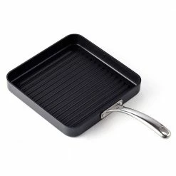 The Cooks Standard 11 in. Nonstick Hard Anodized Deep Square Grill Pan has a hard anodized surface that is durable and harder than stainless steel. The Heavy-Gauge aluminum core distributes heat evenly and prevents hot spots. Nonstick coating delivers exceptional performance and makes cleaning easy. Lead, cadmium, and PFOA free. Stainless steel handle stays cool and is riveted for strength. Ridges for grill marks/browning and allows for oil/fat to drip down. Deep walls hold a large amount of fodd and prevents splatters. Works on gas, electric, glass, ceramic, halogen, etc. Oven safe to 500°F. Not Induction compatible. Dishwasher safe, hand wash recommended.