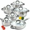 - Stovetop to oven: induction compatible stainless steel cookware set is broiler and oven safe to 500°F without lids; oven safe to 350°F with lids