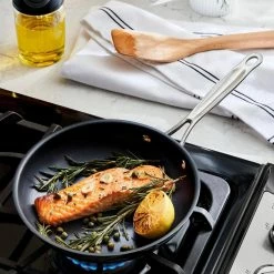 Experiment with and discover new flavors and techniques when cooking with 3-Ply Base Stainless Steel Cookware, designed with an extra thick layer of heat-conducting aluminum to eliminate hot spots by distributing heat evenly from edge to edge. Heavy-gauge stainless steel pots and pans feature a heavy bottom base for lasting durability, and the stockpot and saucepans have etched measuring marks to explore and test ingredients for new recipes. Tempered glass lids have built-in straining rims to lock in heat and flavor while also serving to strain liquids. Curious cooks can investigate a wider range of recipes in the broiler and oven, where cookware is safe to 500°F, 350°F with lids.