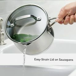 - Straining lids: tempered glass lids lock in heat to bring the most out of every ingredient; saucepan lids feature built-in strainers to strain liquids without the need of a colander