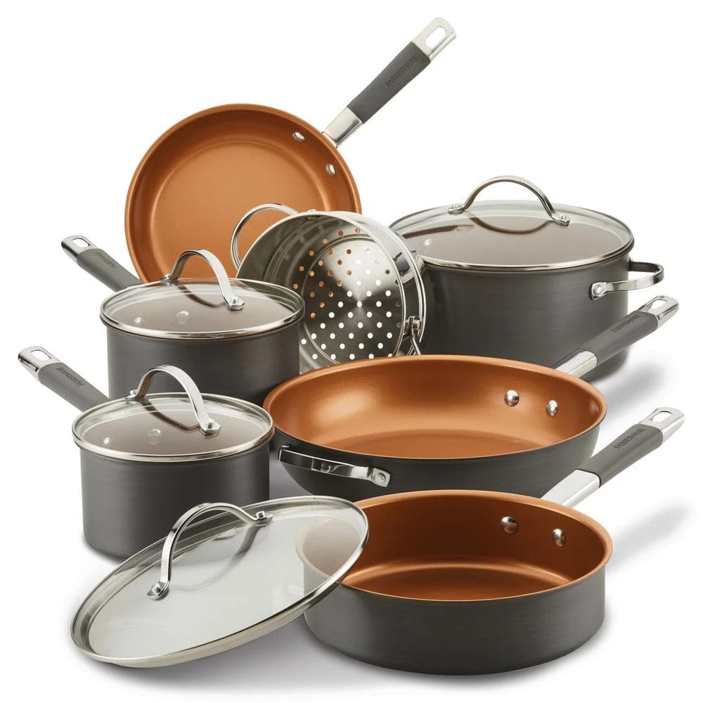 - Fast, even heating: tough hard-anodized aluminum pots and pans for first-rate fusion of durability and heat conductivity