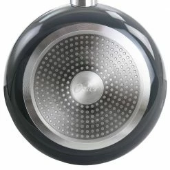 “Reach for the long lasting durability and superior ceramic nonstick features of the Farberware Glide Pro Hard Anodized 12-Piece Cookware Set with Copper Ceramic Nonstick. This essential collection of saucepans, skillets, and a stockpot and saute pan are constructed from ultra tough hard anodized aluminum, and feature high quality CopperSlide technology for effortless nonstick food release and easy cleanup of even the stickiest recipes like honey sticky ribs or a weekend cheddar omelet. Snug fitting glass lids seal in heat and flavor, and the stainless steel and silicone grip easy hold handles provide a comfort and confidence to flip, fry, and saute with ease. Oven safe to 400°F for stove to oven versatility, the pans are backed by Farberware’s hassle free, no worries lifetime warranty. For great performance and long lasting durability, reach for the Farberware Glide Pro Hard Anodized 12-Piece Cookware Set with Copper Ceramic Nonstick”.