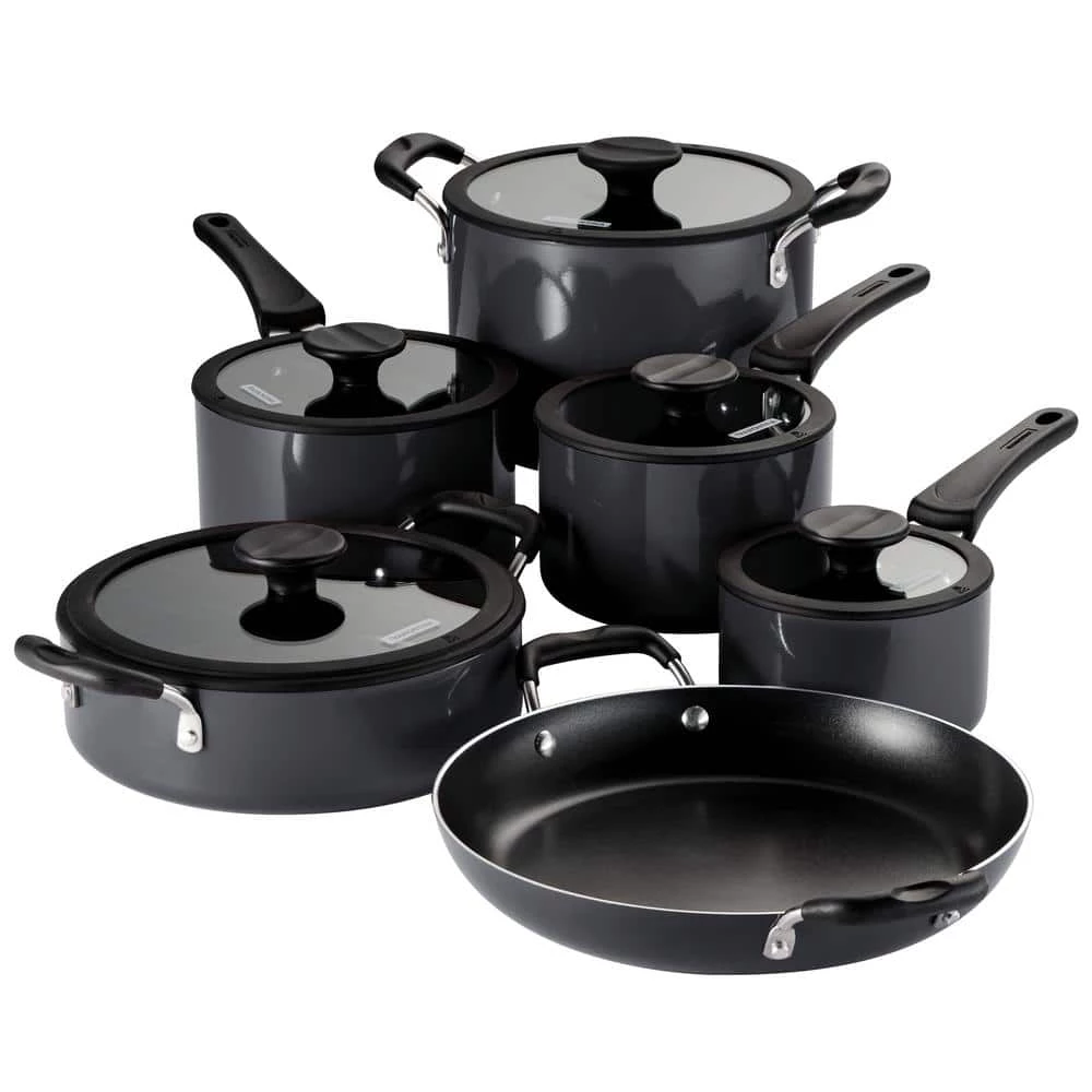 - Set includes: 12 in. saute pan, 1.25 qt. covered sauce pan, 2 qt. covered sauce pan, 3 qt. covered casserole, 3 qt. covered sauce pan, 4.75 qt. covered sauce pot