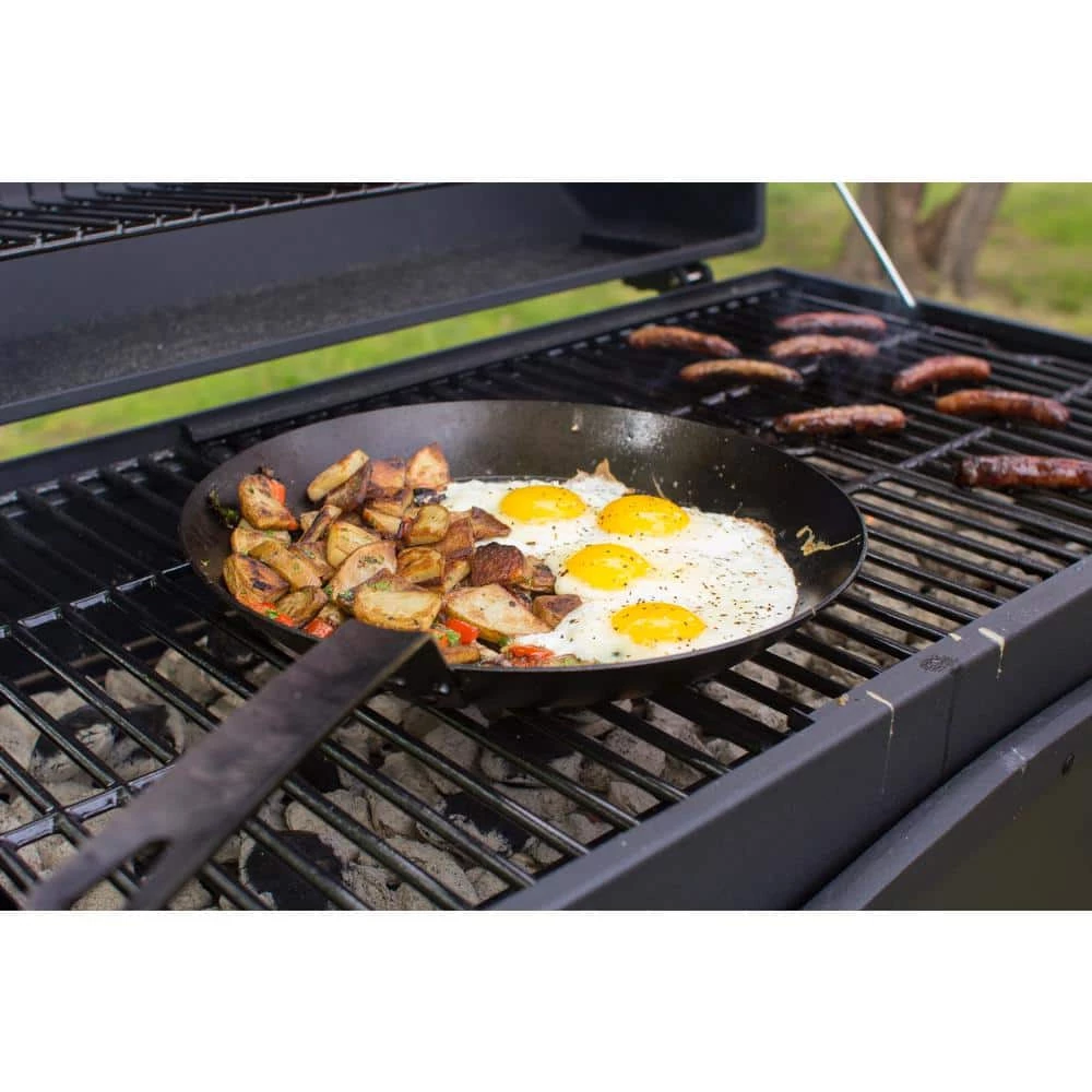 The 12 in. seasoned carbon steel skillet is just the right size for the home chef or the camp cook. The unmatched durability will make this your go-to skillet. Carbon steel has always been preferred by professional kitchens.