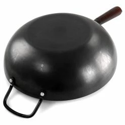 Cook your favorite recipes evenly and perfectly with the 12 in. carbon steel wok by Tia Mowry. This designer wok is ideal for stir frying, steaming, or boiling. Embossed side details and wooden handle add a flair of fashion to your cooking experience while the carbon steel construction is long-lasting and durable. This pan will soon become your go to for large dishes and family meals. Hand wash only.