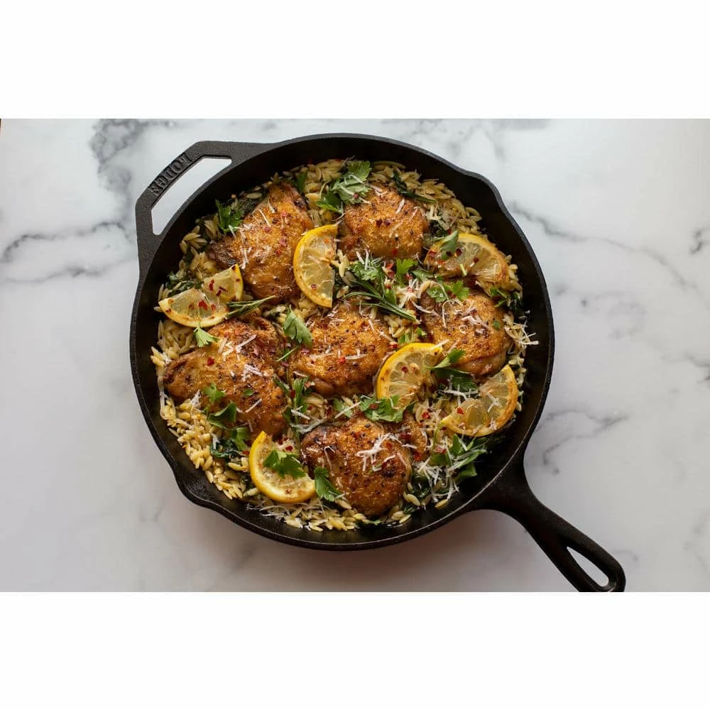 - Seasoned with oil for a natural, easy-release finish that improves with use