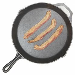 Designed to last for years to come, this skillet is seasoned with natural plant oil for a smooth, quick-release finish that improves over time. Side pour spouts enable you to drain out excess grease and oil. Hanging hole in handle lets you store on a kitchen rack when not in use. Made from heavy duty cast iron, it provides superior heat distribution. The pan is pre-seasoned with natural oil and ready to use at your convenience. Ideal for both indoor and outdoor cooking. Use on a stovetop or on an outdoor grill. Enjoy the durability and convenience that this premium cast iron cookware can bring to your life. Hand wash with warm water and use mild soap. Dry thoroughly with a soft towel. Item dimensions may differ slightly due to the unique nature of the product. Color and finish may also differ from the images shown due to differences in monitor displays. Props and accessories are not included.