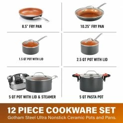 - Ultimate ceramic nonstick the Gotham Steel nonstick cooking surface is coated three times and then reinforced with diamonds to deliver the ultimate food release. No seasoning or even oil or butter needed, makes for healthier eating, and provides for hassle free, 1-2-3 cleanup.