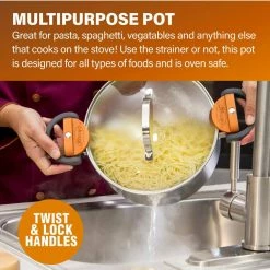 - Set includes: 9.5 in. fry pan, 10.25 in. fry pan with glass lid, 1.5 Qt. sauce pot with glass lid, 2.5 Qt. stock pot with glass lid, 5 Qt. stock pot with glass lid, and stainless steamer insert for 5 Qt. stockpot, 5 qt Pasta Pot.