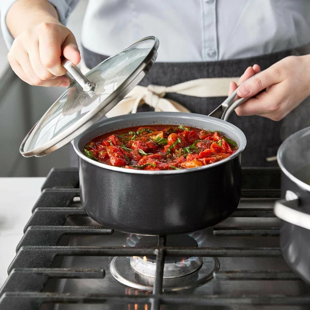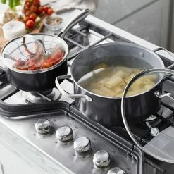 Get to your meal faster with GreenPan Swift. Crafted from quick-heating aluminum, this collection delivers outstanding heat transfer so you can get to your meal earlier. Plus, thanks to our healthy ceramic nonstick coating, you won’t have to spend time scraping and scrubbing. The perfect fried egg, crispy shrimp, mouthwatering seared meat or a homemade pan pizza-this set makes everything easy to transfer with the drip-free pouring rims. The sturdy stainless steel handles give you total control and the tempered glass lids give you an easy view of your meal in progress.