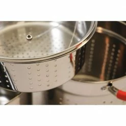 This multifunction cooker allows you to steam your favorite vegetables, cook pasta, and use it as a large stockpot. Encapsulated base provides faster and even heat distribution. Constructed in 18/10 stainless steel and induction stovetop ready.