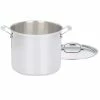 The Cook N Home 12 Qt. Stainless Steel Stockpot Saucepot with Lid is made of mirror polished 18 to 10 stainless steel for durability and easy cleaning. Aluminum disc layer in bottom for even heat distribution and prevents hot spots. Tempered glass lid with steam vent to view food while cooking. Riveted handles are comfortable and stay cool. Reinforced rim for long heating and pouring. Large size for multipurpose function and can be used for canning and jarring. Induction compatible. Works on gas, electric, glass, ceramic, halogen, etc. Oven safe to 350°F. Dishwasher safe.