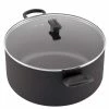 - Tempered glass lid with steam vent; riveted handles with silicone grip stay cool