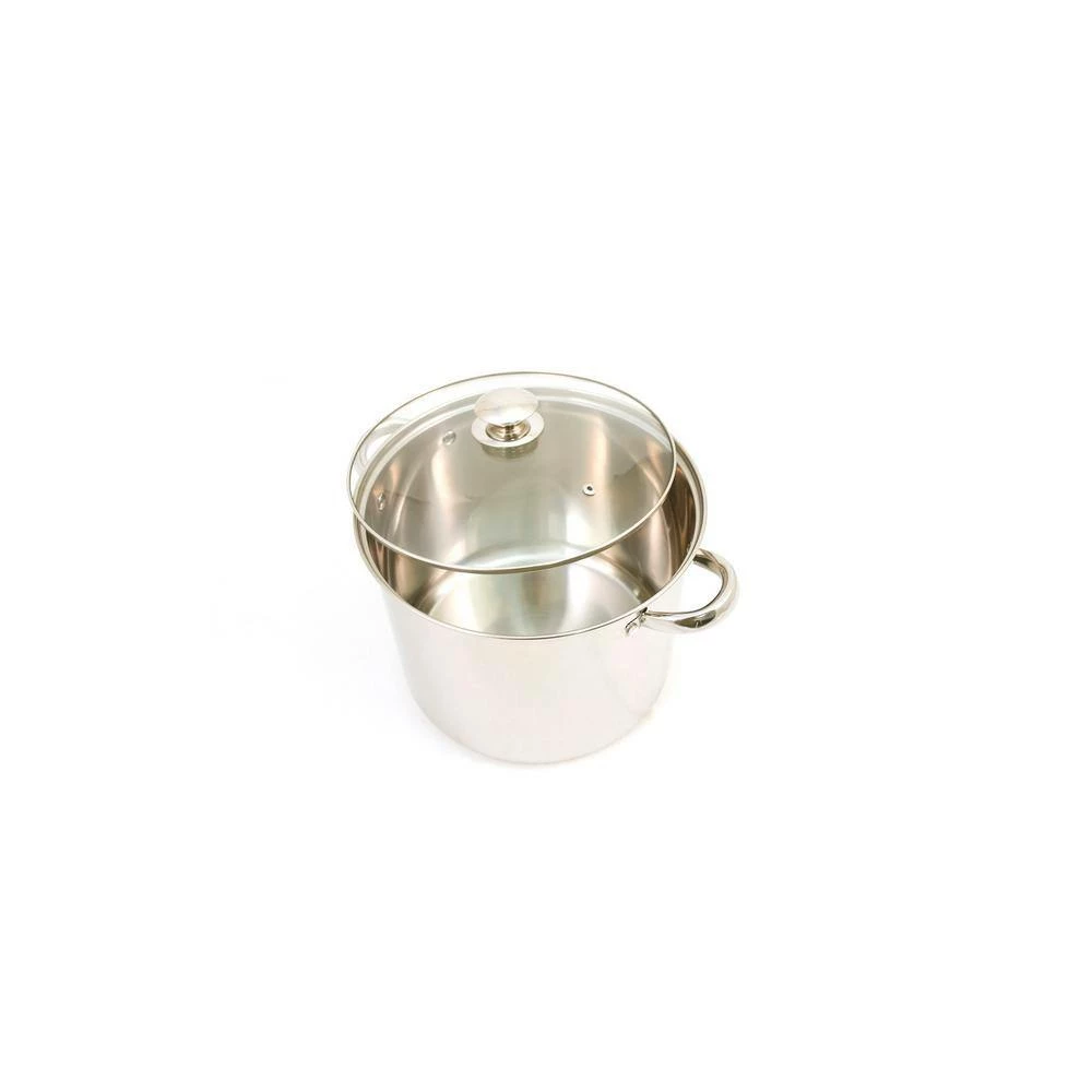 Constructed in stainless steel for durability and encapsulated base enhances faster and even heat distribution. Tempered vented glass lid allows you to monitor cooking. Also features mirror polished exterior with stay cool riveted handles.