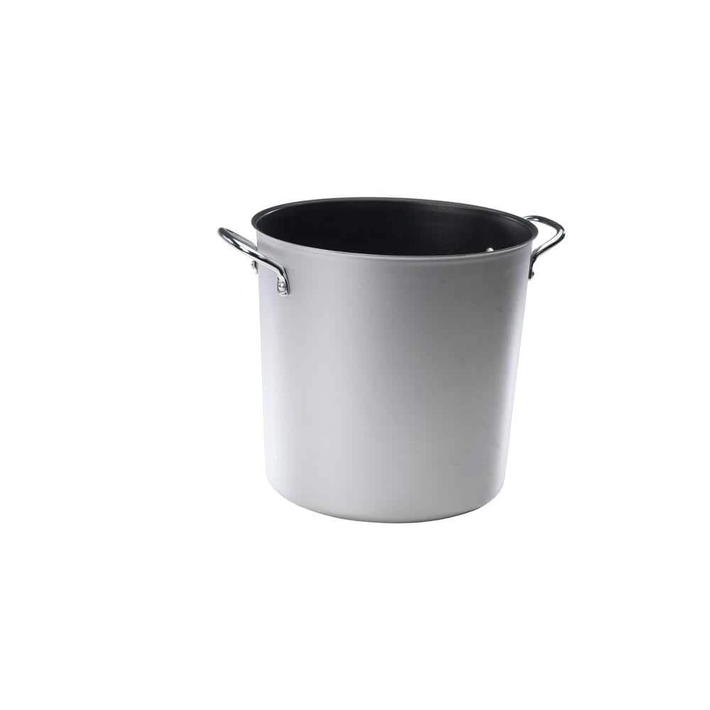 12 Qt. Stock Pot is made of aluminized steel with a nonstick interior. Make soups and stews for the family or long-simmering stocks for use in other recipes. From soups to canning, and lobster boils to sauces, our induction-ready stock pot series is among the most respected in the industry. These signature pots have sturdy cast aluminum side handles that are large enough to safely grip with a mitt. Exteriors are an upscale dark charcoal and interiors feature a durable premium nonstick. Top off with our brushed stainless steel lids with cast aluminum knobs, sold separately. Our stock pots nest neatly together to maximize shelf space. People love owning and using these big, beautiful pots. 5-Year Warranty.