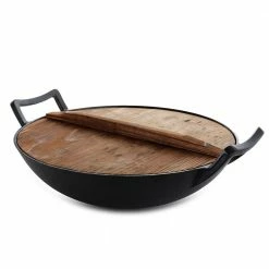Host your next family feast with the MegaChef 2 Piece 14 Inch Heavy Duty Cast Iron Wok with Wood Lid. This pan’s enormous size lets you cook in bigger portions; ideal for large families and friendly gatherings. The heavy duty cast iron construction is made to last ages while providing even heating. This set comes pre-seasoned for immediate use upon arrival. Make a large array of dishes such as cabbage stir fry, steam clams in butter, or chicken fajitas. Keep any delicious meal warm in the wok by topping it off with the wood lid cover. Hand wash for long lasting quality and finish with lightly rubbing vegetable oil.