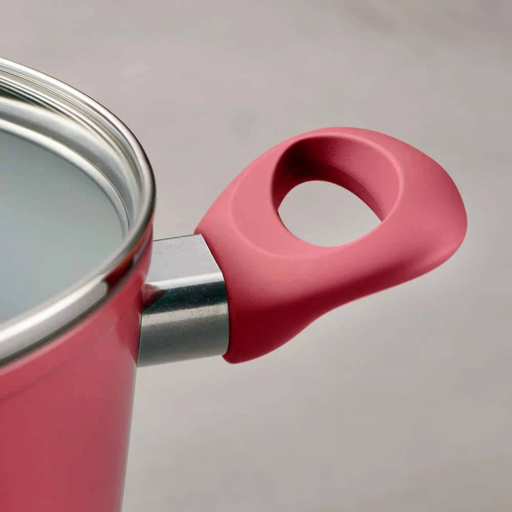 The Tramontina 14-Pieces Ceramic Induction-Ready Cookware Set is ideal for new and experienced cooks, giving them a great variety of pieces for oven and stovetop recipes-as well as an eye-catching pop of color. The forged, heavy-gauge aluminum set boasts a vibrant colored exterior, as well as a gray ceramic interior that is made without PFOA, PTFE, lead, or cadmium, which keeps your food from sticking and makes for quick clean-up. A heat- and shatter-resistant, tempered glass lid with stainless steel rim lets you monitor your cooking progress, while soft-touch bakelite handles allow for safe and easy maneuvering. Compatible with induction, gas, electric, and ceramic glass cooktops, this set is also oven-safe up to 350°F / 176°C, and can be cleaned in the dishwasher. Available in a variety of colors.