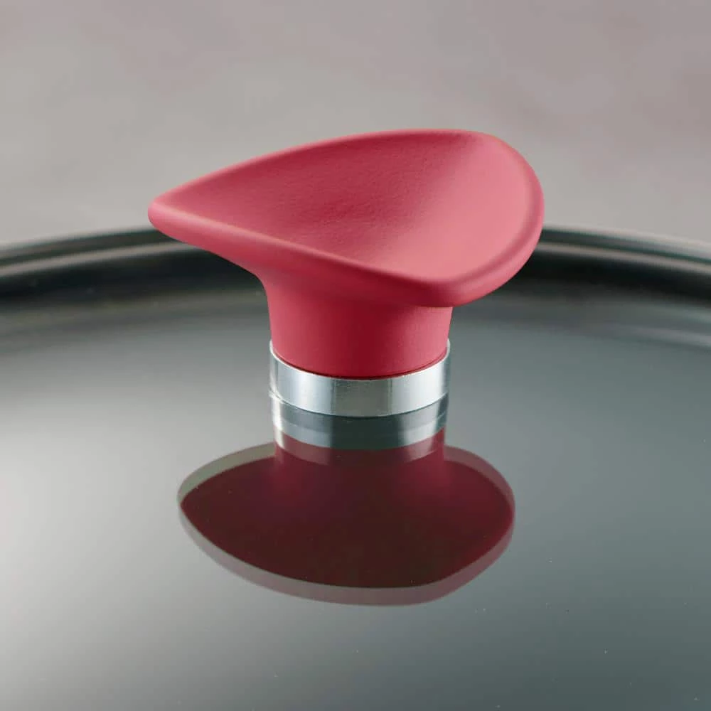 - Heat- and shatter-resistant, tempered glass lids with stainless steel rim
