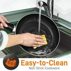 - Non-stick kitchenware has tempered glass lids with vents for steam to escape