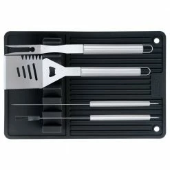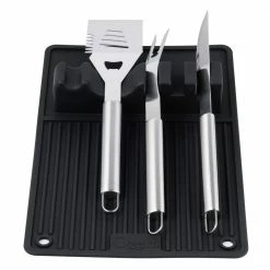 - Utensil holder includes 4 purpose-designed slots that keep BBQ utensils elevated