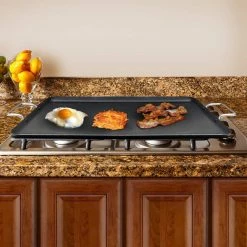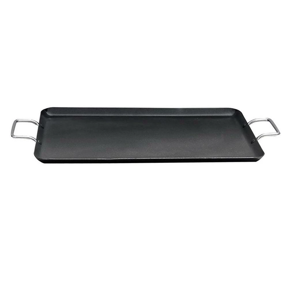 The Nonstick double Griddle Pan is perfect for making pancakes, grilling sandwiches, or frying your eggs and bacon. The heavy duty Aluminum is perfect for long term high heat cooking. With the nonstick surface feature the food release is very convenient and less messy. Enjoy all your favorite meals and treat your family or guests.