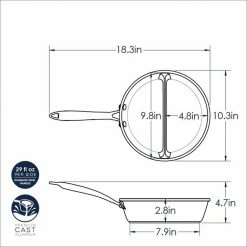 Designed for versatility and efficiency, you can cook two separate foods at once in this innovative, space-saving 2.5 qt. pan. Now one piece of cookware takes the place of two, making it ideal for small kitchens, small households, camping, boating and more. Ideal for reheating leftovers or cooking two different food items. Safe for use on gas, ceramic and electric stoves, it’s also oven safe to 400°F. Though people at all stages of life enjoy owning our divided pans, they’re filling a special niche for the newest generation of cooks who appreciate the space-saving, time-saving, money saving concept of doing more with less. Crafted of cast aluminum with a beautifully balanced and riveted stainless steel handle. Includes PFOA free premium nonstick for easy food release and cleaning. It’s a pot. It’s a pan. It’s both– and it represents quality, durability and sustainability as well.