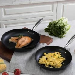 - Includes 9.5″ and 11″ High temperature frying pans