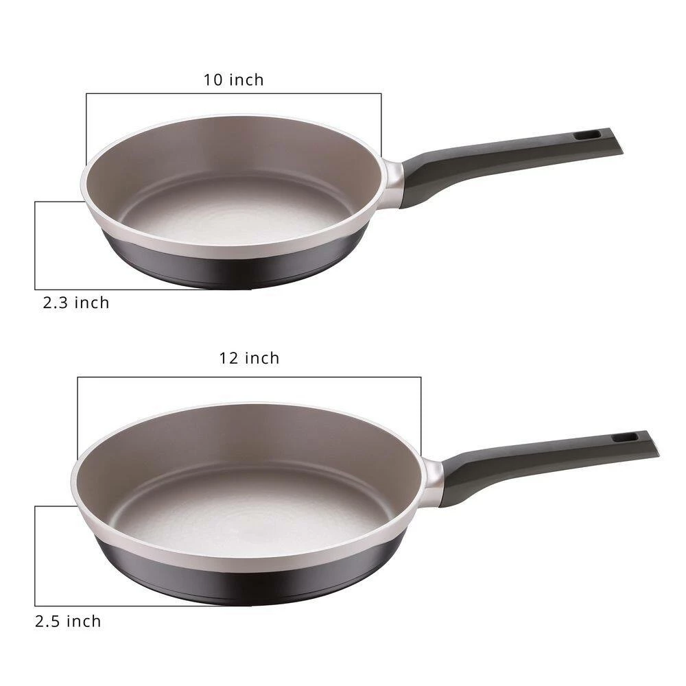 - 2-piece fry pan set – the Gastro 2-piece fry pan set from MasterPRO features two essential sizes for any kitchen collection: a 9.5 in. fry pan and an 11 in. fry pan, whether you’re quickly frying eggs in the morning or searing and sauteing for dinner, the Gastro 2-piece fry pan set from MasterPRO provides exactly what you need