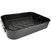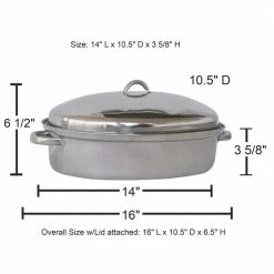 Prepare a delicious meal with the AmeriHome 5 Piece Stainless Steel Roasting Set. An Oval Roaster with matching lid and wire grate, and one Baking Tray with matching wire grate are constructed of 202 grade stainless steel, which conducts heat well, plus it is tough and long lasting. Ideal for the campsite, or as an extra set of pans in the trailer or RV. The stainless steel construction also makes this set dishwasher safe, so clean-up is simple. Wire racks that fit inside each piece of this Roasting Set help prevent food from burning and trap the drippings from roasts, whole chickens, or small turkeys. One Oval Roasting Pan with fitted lid and wire grate Pot Size: 14 in. L x 10.5 in. W x 3 5/8 in. H in. Pot with lid: 16 in. L x 10.5 in. W x 6.5 in. H Grate Size: 13 in. L x 8 in. W One rectangular Baking tray with fitted wire grate Tray size: 15 in. L x 11.5 in. W x 2.5 in. H Overall size: 16.25 in. L x 12.75 in. D x 2.5 in. H Grate Size: 13.5 in. L x 10 in. D