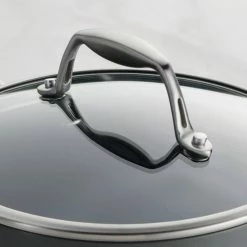 - Heat- and shatter-resistant tempered glass lid with wide stainless steel rim