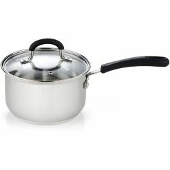 - Made of polished 18-10 stainless steel with an aluminum disc layered in the bottom