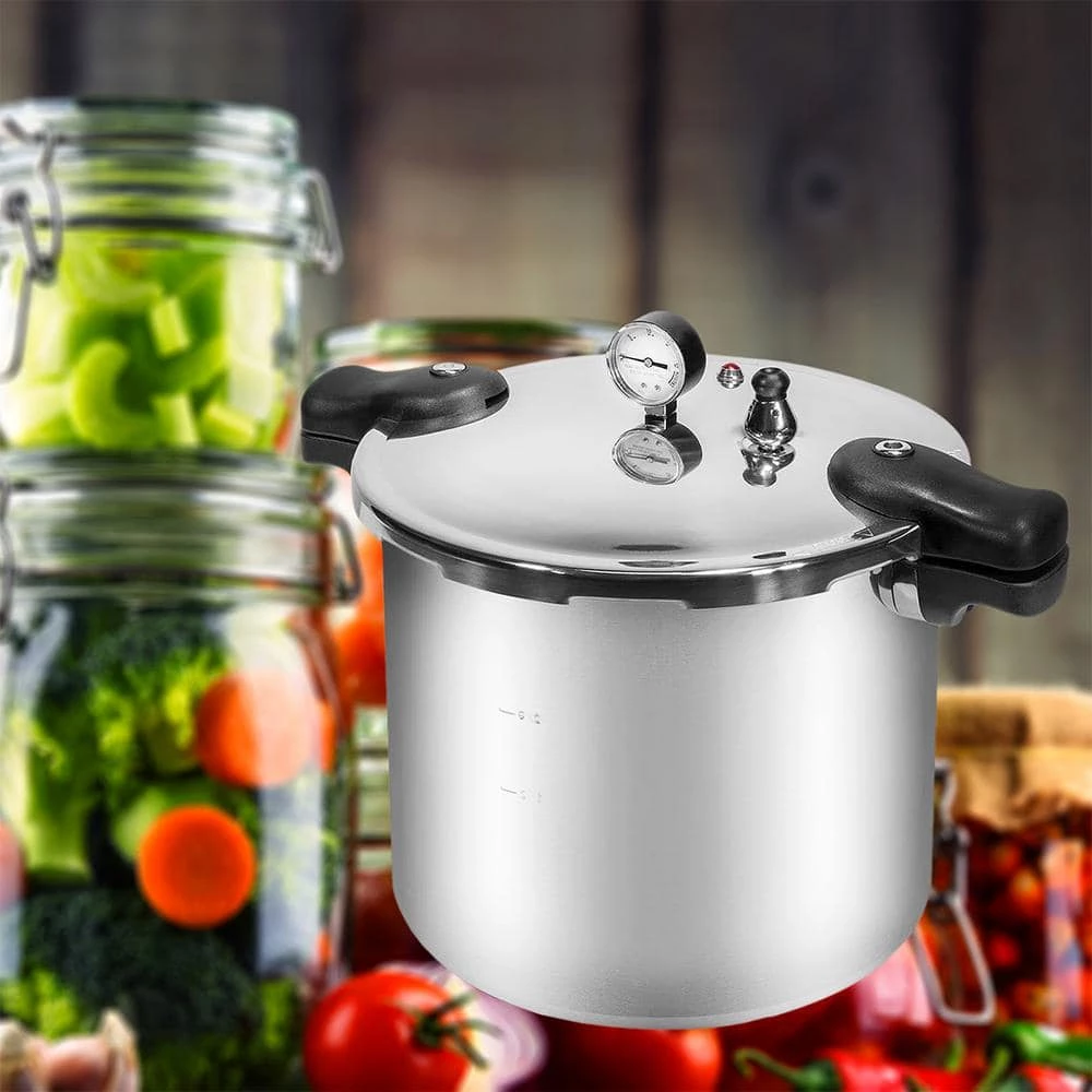 - Heavy gauge, rustproof polished aluminum, 22 qt. pressure canner and pressure cooker offers time and cost savings with a deluxe pressure gauge dial for easy pressure monitoring